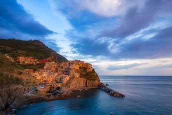 I really like this view of Manarola, and of course it’s popular with many other photographers. Just to have a bit different photo than everybody else, I vent with a vertorama here. Like this I got much more sky and the sea, to make this very nice and blue. And the little ship