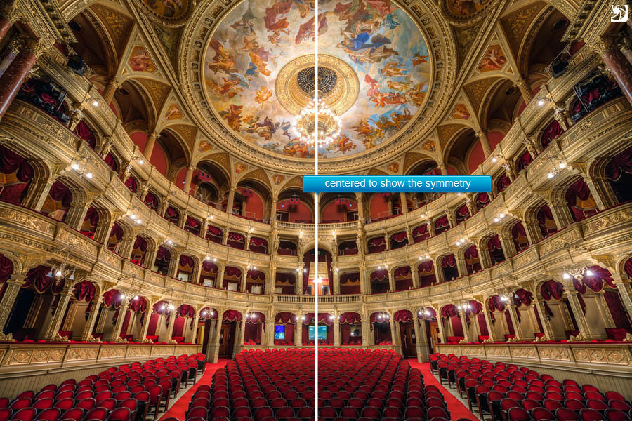 - reflection – has also a lot to do with symmetry. For me this one is just natural. If you cut off a part of the reflection , because you wanted to avoid the centering, it will look aukward.
