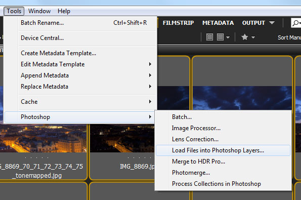 A lot of the corrections require that you load your original brackets and the final tone mapped image into Photoshop. The quickest way to get your files into Photoshop is to: