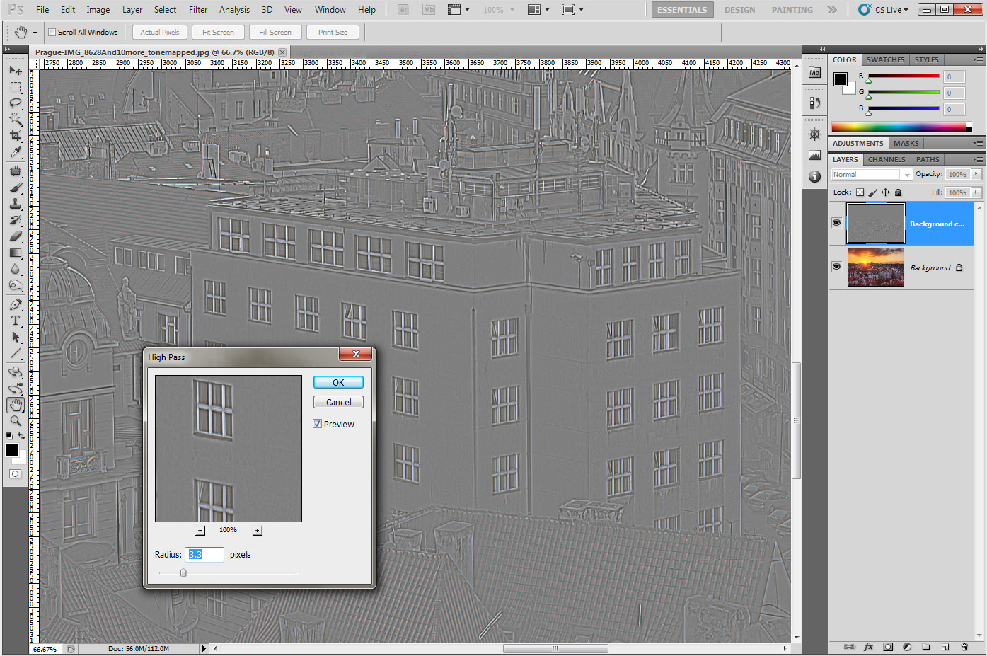 - play a little with the number of pixels, until you see the detail you want to have i the final photo. Smaller number work well here (2-4px)
