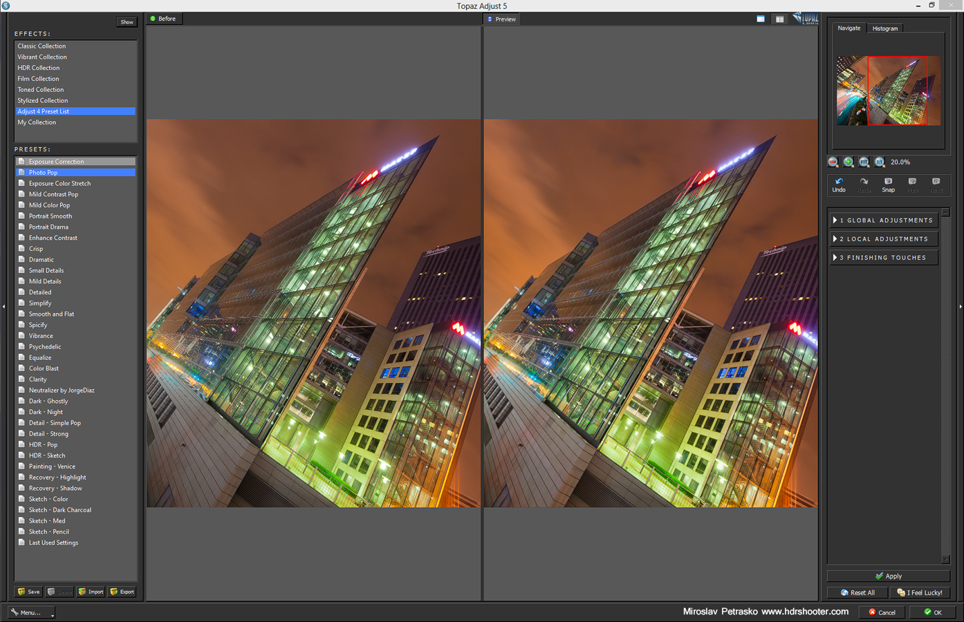 The most unique feature of Topaz Adjust is the Adaptive exposure. It can pull out a lot of detail and tonal range from a single exposure, so you can even fake a HDR look with it. But if you do, I really suggest you tone it down later in Photoshop. The results of Topaz Adjust are usually quite strong and very prominent in the photos. You can think about it as, if you can recognize the used filter from the look of the photo, than you have overdone it.